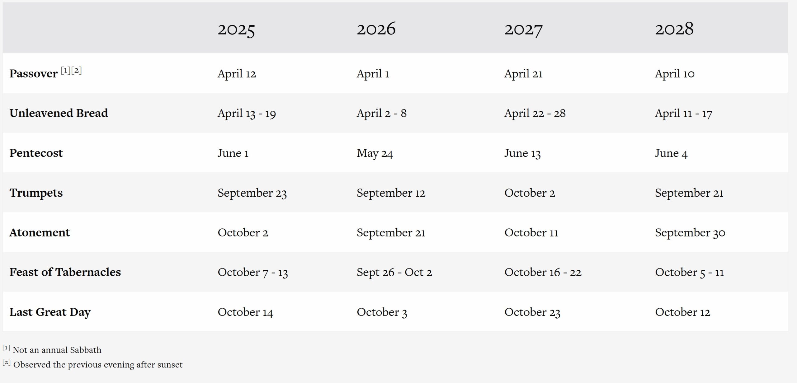 Holy Day Calendars